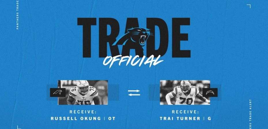 A Panthers megszerezte a Los Angeles Chargers csapatától a támadó tackle Russell Okung-ot, cserébe a guard Trai Turner távozik LA-be. A csere hivatalosan szerdán délután történt.