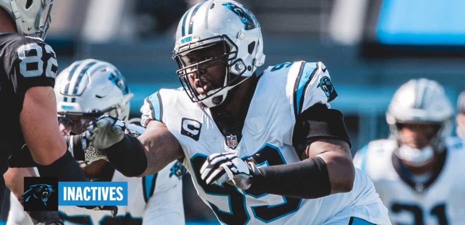 A Carolina inaktív játékosai között három sérültnek nyilvánított játékos szerepel: a defensive tackle Kawann Short (láb), a defensive end Yetur Gross-Matos (agyrázkódás) és a left guard Dennis Daley (boka).
