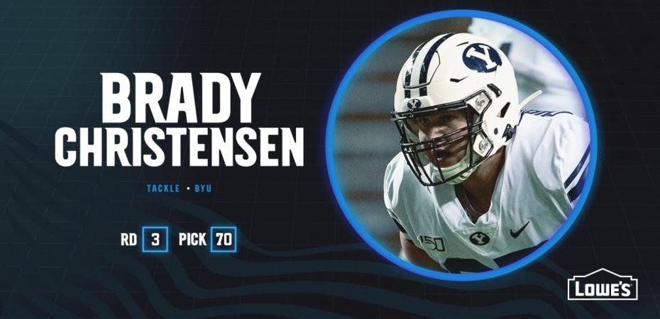 A Panthers pénteken az NFL Draft harmadik körében (a 70. helyen) kiválasztotta a BYU offensive tacklejét, Brady Christensent.