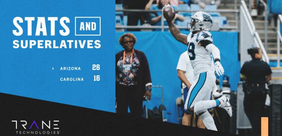 - A Panthersnek mindössze 13 futása volt, 40 yardot szereztek. Ez volt a legkevesebb futójátékuk 2014 óta (3. hét), amikor a Steelers ellen 10 kísérletük volt.