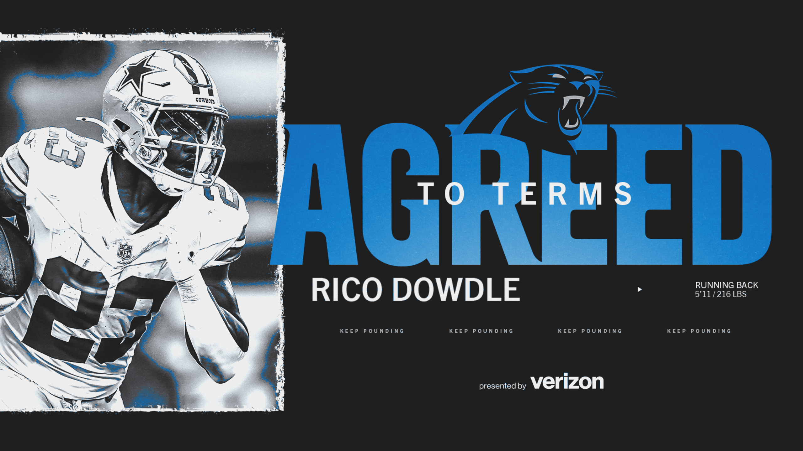 A 26 éves Dowdle az előző szezonban kirobbanó évet produkált a Cowboysnál, 1079 yardot futott és két touchdownt szerzett, valamint 39 elkapással 249 yardot és további három TD-t ért el.
