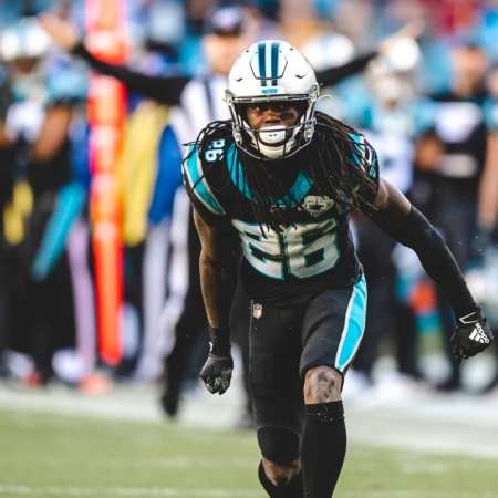 2020.09.12. panthershun Donte Jackson arra készül, hogy felvegye a versenyt a villámgyors Henry Ruggsszal
